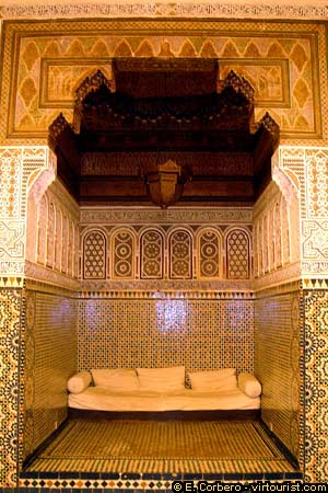 In the picture you can see one of the rooms in the Madrasa Ben Yousef. Enjoy the richly decorated walls and ceiling.