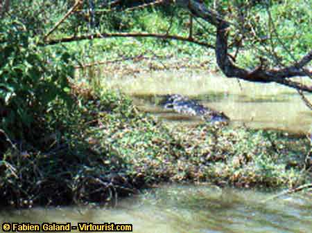 After we saw the alligators in the farm, it's nice to see free alligators. Can you see where the alligator is lying?