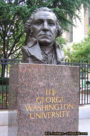 South of Dupont Circle is the George Washington University, a private institution founded in 1821. In the pciture you can see a bust dedicated to the first US president on the university campus.
