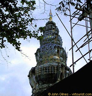 The chedi of Wat Ku Tao (pictured) is fashioned from ceramic chards. To some it appears to be five monks’ bowls in descending order, stacked one on top of the other. One of the temple's attractions is its tranquility. It’s a great place to sit under the banyan tree and meditate.