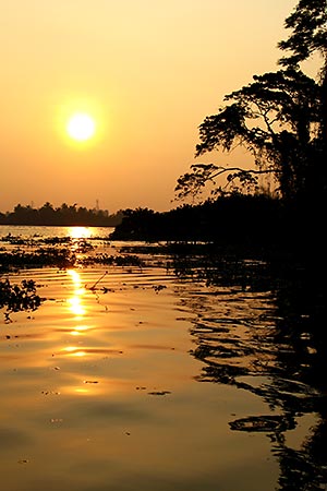 One of the most magical places in the Backwaters of Kerala is a lake not far from Alleppey. If you started your boat tour in this town, the boatman will try to be in the lake a few minutes before sun set. Seeing the sun setting in this lake is a unique experience.
