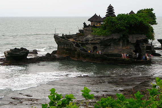 Tanah Lot Temple, located South of Bali, is one of the main tourist attractions in the island. Thousands of visitors come every day here to see the temple built in the 16th century on a rock in the sea. The best time to come is in the evening, when the sun sets behind the temple.