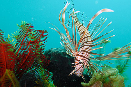 At the deepest part of Ribbon's Reef visibility tends not to be good, and corals not very colorful, but you may see huge Lion Fish and even a Napoleon Wrasse!