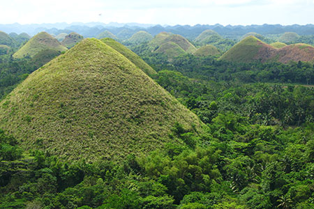 There are more than one thousand hills in this region, and they all have an almost perfect conical shape. They were originally formed when the area was under water. After many years of erosion, they became round.