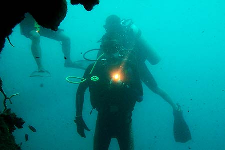 The bow of the ship lies 5 meters deep, and the stern around 22 meters.