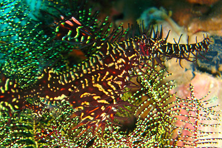 Here you can see one of the strange creatures that live in the Philippines reefs, a ghost pipefish. You will find many of them in the Seahorse Cave, West coast of Gato Island.