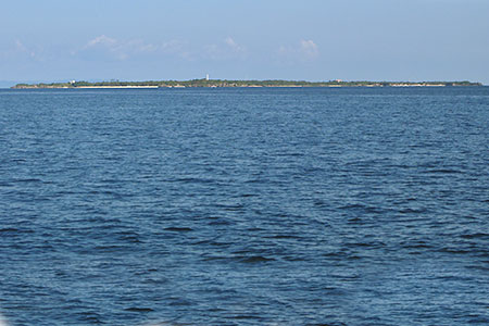 After the visit to Gato Island we go back to Malapascua's main beach. As you can see in the picture this is a flat island with no buildings taller than the palm trees; the white building you see in the center of the image is the lighthouse.