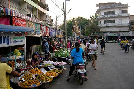 Here we are outside Sukhothai's main town market. Although you do see some tourists around town, most of the folks out and about are locals.