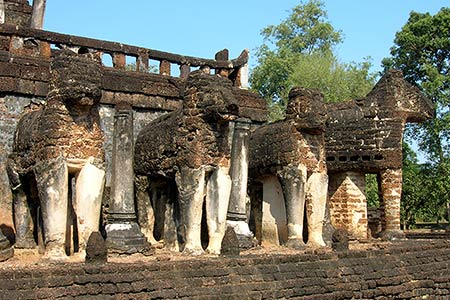 Here are four of the several dozen elephants surrounding the base of the main chedi at Wat Chang Lom. (To me, they looked more like lions, but who am I to argue with all the experts that say they are elephants.)