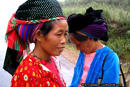 There are nine ethnic minorities living in Cao Bang province, including the Tay, Nung, Dao, and H’mong. I am not sure at which ethnic minority the two ladies in the picture belong to. I only know it was a funny situation. I saw them walking along the road. We stopped the car, and I asked them if I could take some pictures. It was difficult making them understand what I wanted. When I showed them my digital camera's screen, they started laughing. It was like if they had never seen a picture of themselves before. I think they had a great time too. They looked even more curious than us. Maybe they had never seen a "crazy" westerner before. It is a pity I did not have a polaroid with me. I would have loved giving them some pictures.