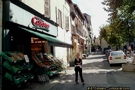 To get to the 'Fort Saint André' you have to walk up the 'Montee du fort' -- the street in front of us. On our left sits another of the monuments in Villeneuve lez Avignon that deserves a visit: the 'Chartreuse of Val de Bénédiction'. This Carthusian Monastery, founded by Pope Innocent VI, is one of the largest in Europe. The complex has three cloisters, a church and a chapel with beautiful frescoes.