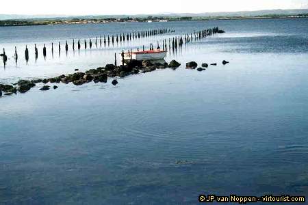 The Bassin (or Etang) de Thau in Southern France is a lagoon -- a 20 km-long expanse of brackish water separated from the Mediterranean by a narrow stretch of sand. The water, kept pure and clean by a sound environmental policy, offers ideal conditions for the culture of oysters and other shellfish, but also allows fishing and other water sports.