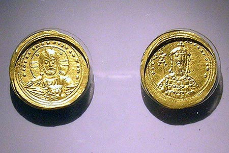 Another interesting exhibit in the Byzantine Museum is its large collection of gold coins depicting the various Byzantine Emperors. (This one, I believe, is the Emperor Constantine VIII, who became emperor in 1025.)