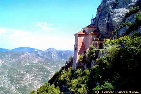 In this photo you can see the Santa Cova (Holy Cave), where according to the legend our Lady of Montserrat ("La Monereta") was found. The chapel you see was built in the 17th century, and was recently restored. Do not miss the votive offerings rooms.