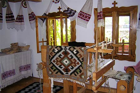 The village of Botiza is famous for its wool carpets died with natural colors from skins of onions, plants, etc. In almost every household can be found a loom and most peasant women in the village are weavers and artists that keep the tradition of natural dyes still running. In the picture you can see a wooden hand loom and rug from Casa Berbecaru, a museum (the old house displaying furniture and objects of a typical traditional Botiza household) and also a guest house(the new house) that is located in the center of the village.