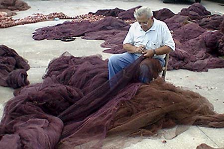 The Serrallo is the traditional fishermen district. In the afternoon you can still see old fishermen repairing their nets. They have repaired nets this way for centuries.
