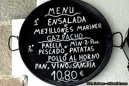And after some time under the sun it is time to fill our stomachs. One of the stars of the local cuisine is the 'Paella' (= pan in Catalan). This course has its origins in Valencia. Nowadays you find it throughout the Coast of Spain. The 'paella' is a rice course with Mediterranean sea food (lobsters, clams, mussels) and vegetables.